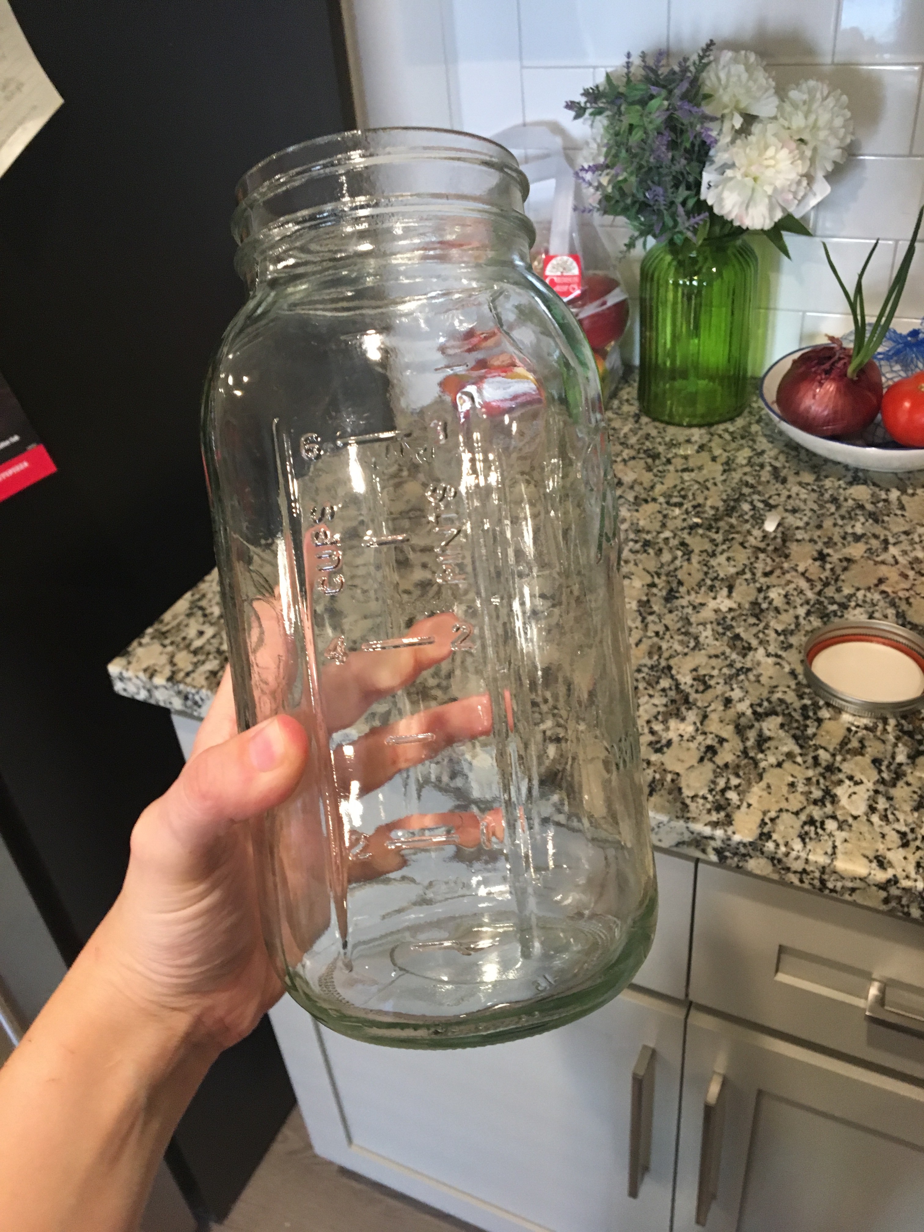 First you need a pitcher. I like using a 64 ounce mason jar. Why yes, I am white, how did you know?