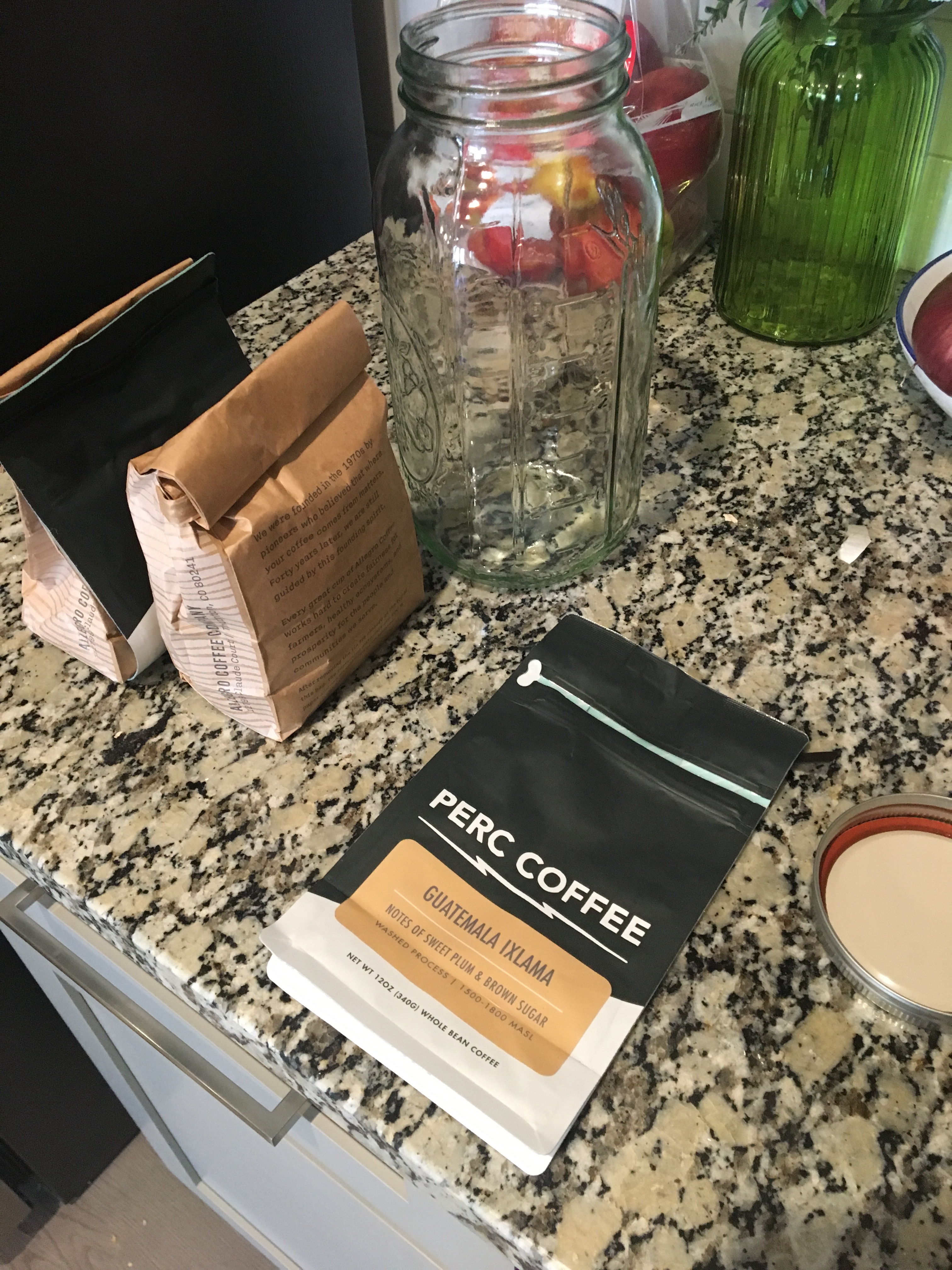 Next you’ll need coffee beans (duh). I personally love light roast beans from Guatemala, so I chose Perc Coffee from Whole Foods. Make sure they are coarsely ground.