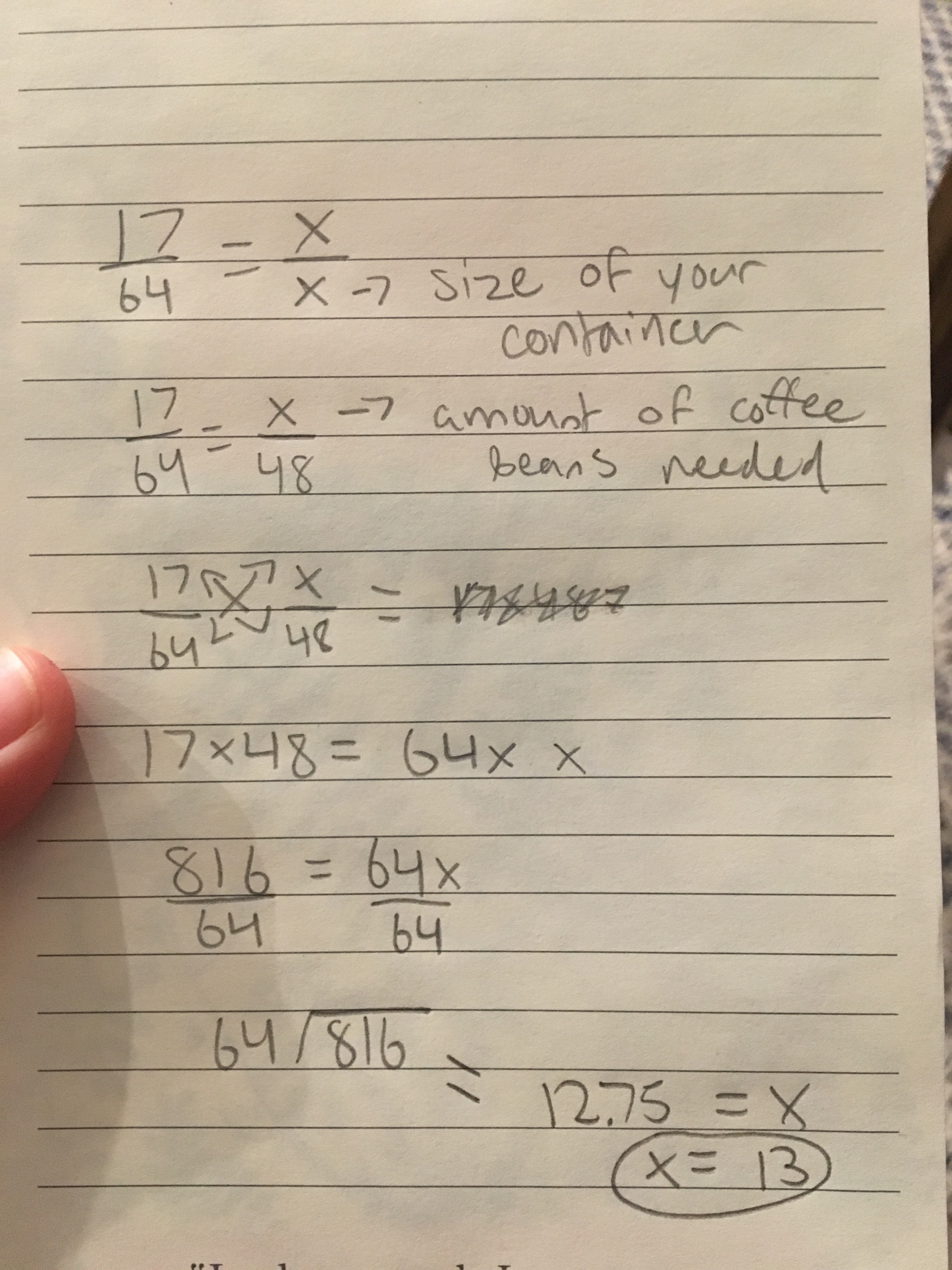 Now at this point, we can create a fraction (yay!) that helps us if you don’t have a 64 ounce container.